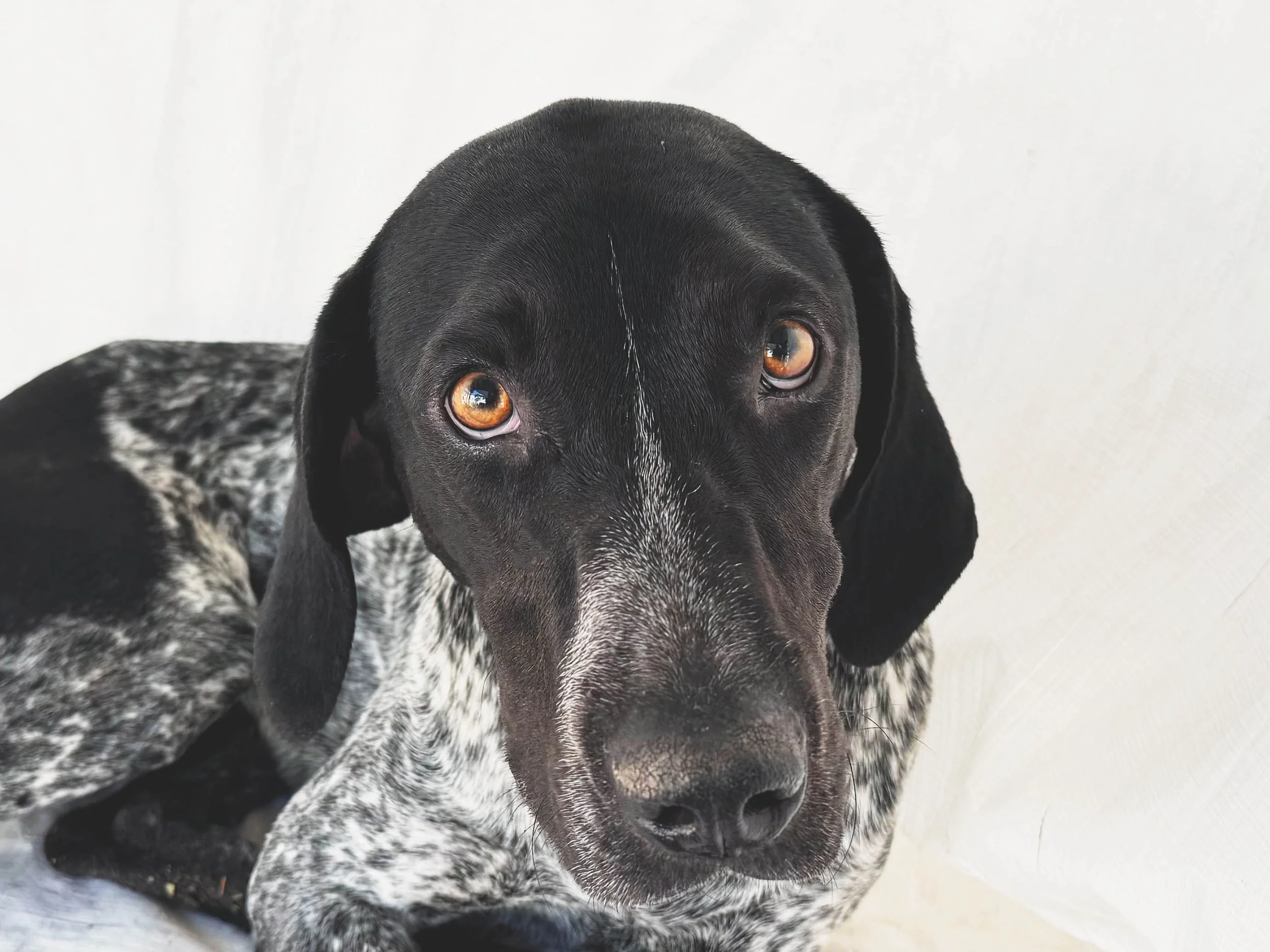Gunther is an 18 month old stunning black and white roan male German Shorthaired Pointer. From the moment he arrived, Gunther showed us what an incredible dog he is. He slept quietly in his crate, made friends with every dog he met, and quickly proved he already had training. On his first bike ride, he stayed right beside Greg—even when he spotted a squirrel.