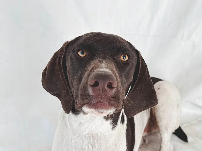 Peach is a beautiful year and a half old white and liver female German Shorthaired Pointer. She has a heart of gold that matches the heart on her hip.