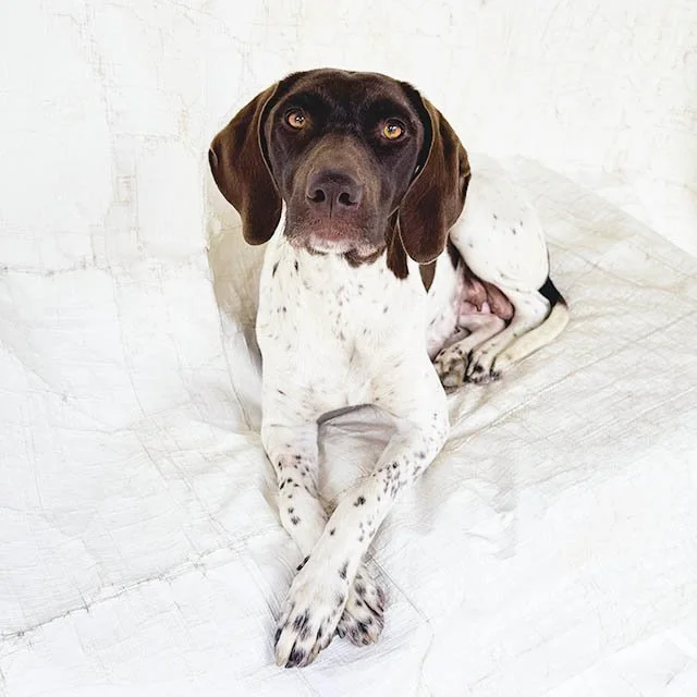 Despite her past, Minnie showed a spark of trust and a quiet eagerness for connection. She jumped into the transport kennel easily. She rode calmly and settled down in the park. She waited peacefully for the next part of her journey. And let us tell you, this girl is sweet! Once Minnie feels comfortable, she transforms into the ultimate cuddle bug. Get ready for a shadow! She’s the type of GSP who loves to be close and is always ready to share her affection. You’ll find her right by your side. In fact, so many volunteers who have met this lovely girl have already fallen head over heels for her!